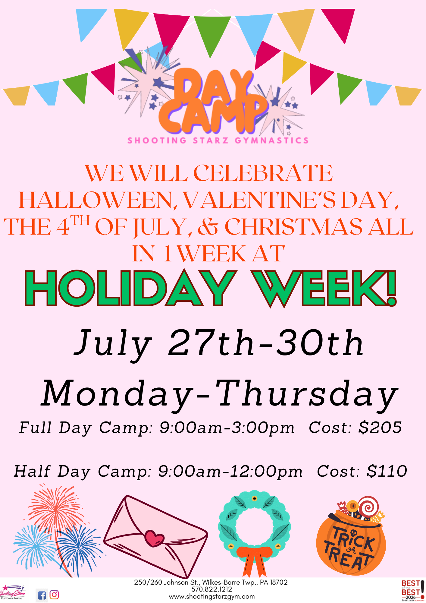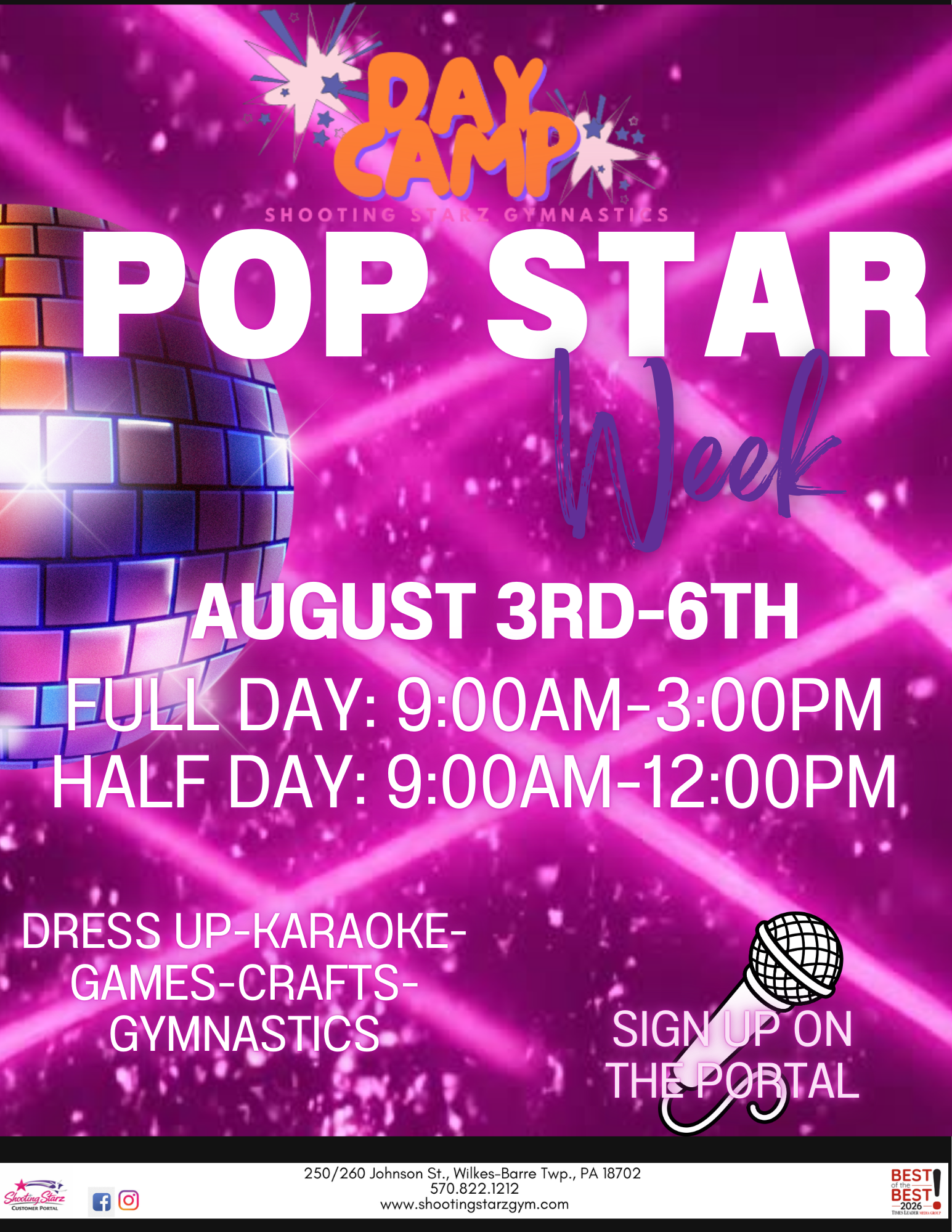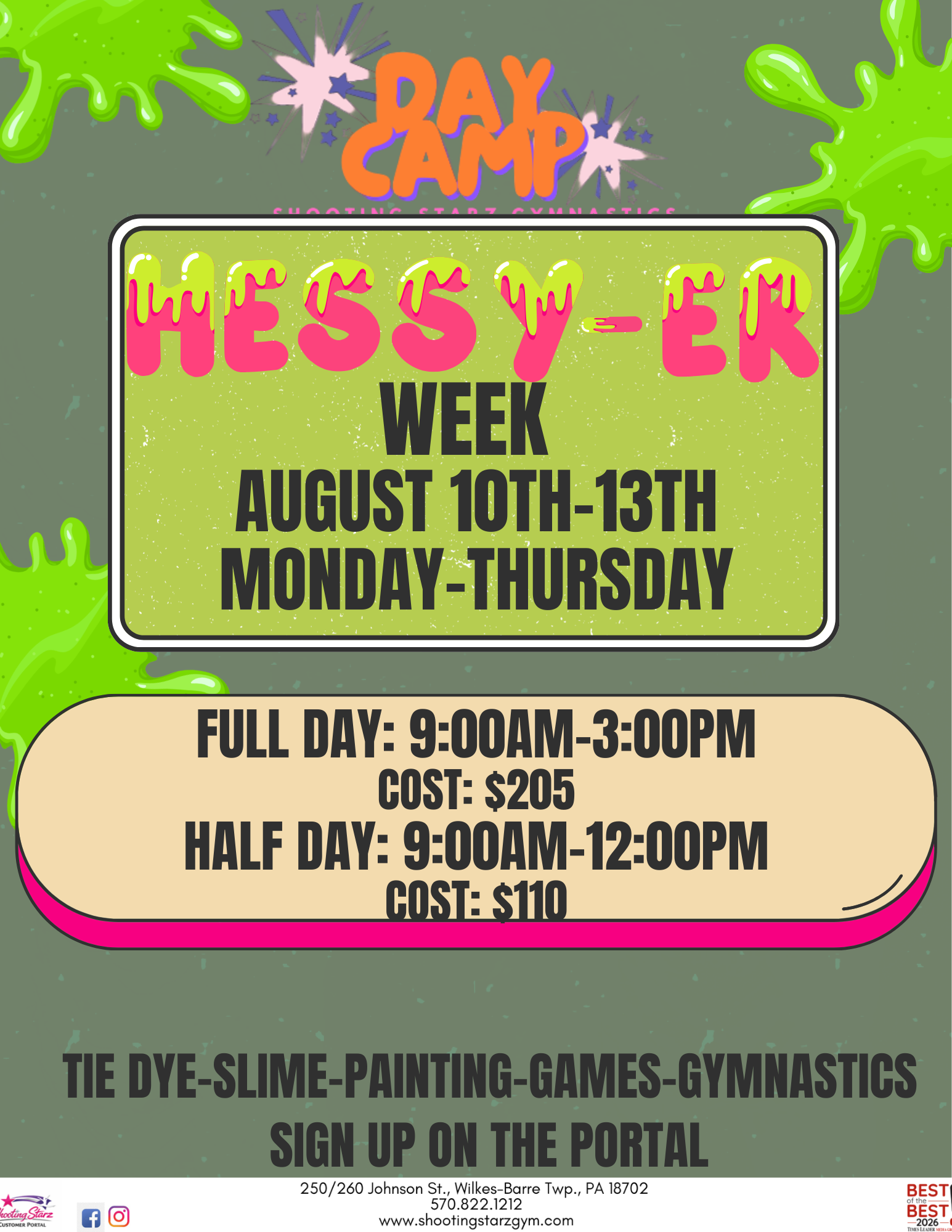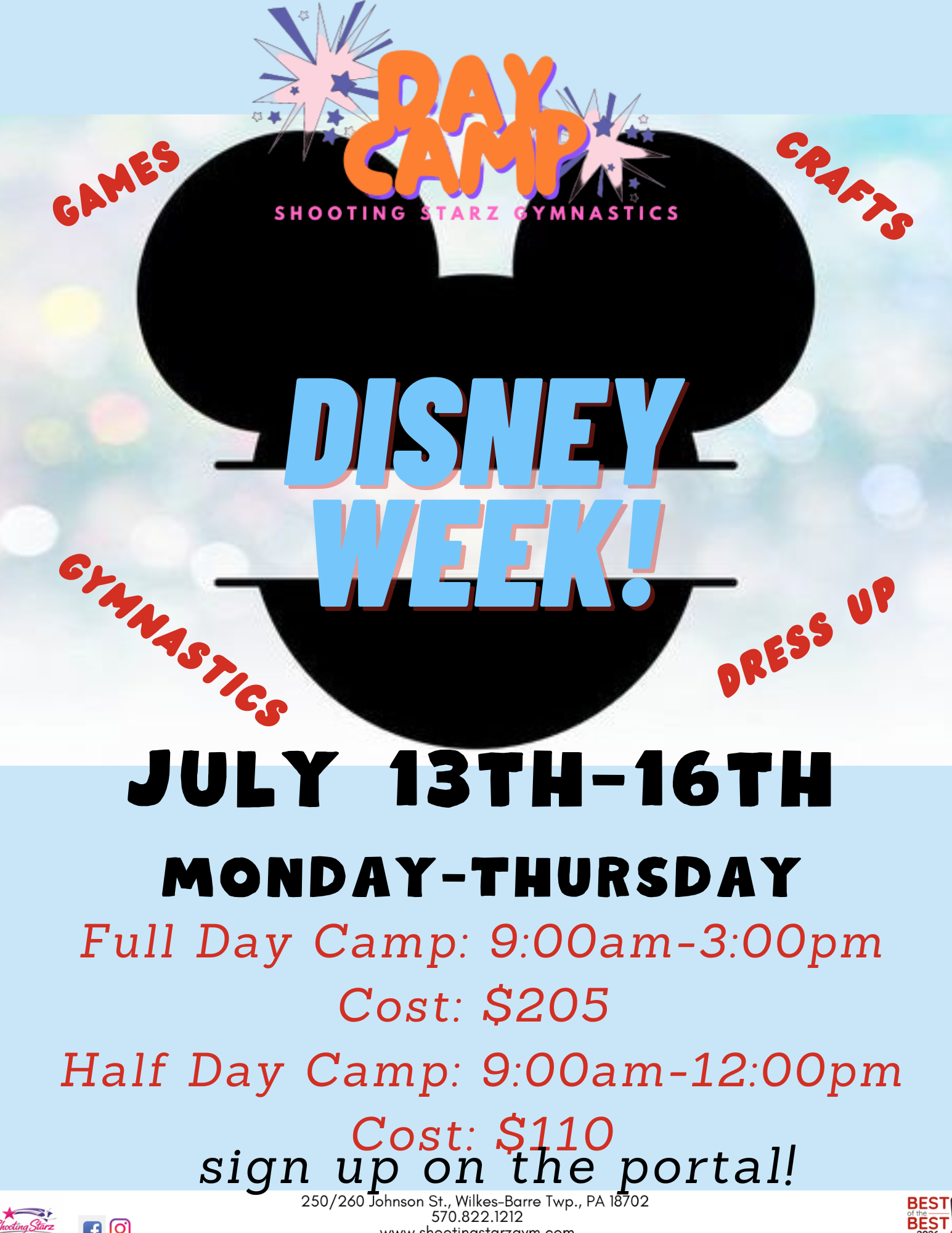 Camps at Shooting Starz aren’t just about gymnastics! Each week has a theme with arts-and-crafts, games, gymnastics, and more fun activities. Head to the parent portal to sign up!
